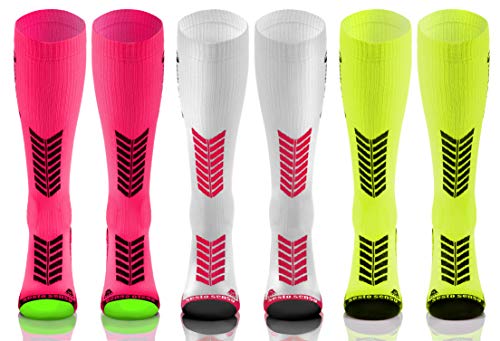 Kleurrijke compressiekousen voor dames en heren; 1 paar of 3 stuks; Hoge sportsokken met gemiddelde compressie; Duurzaam en handig